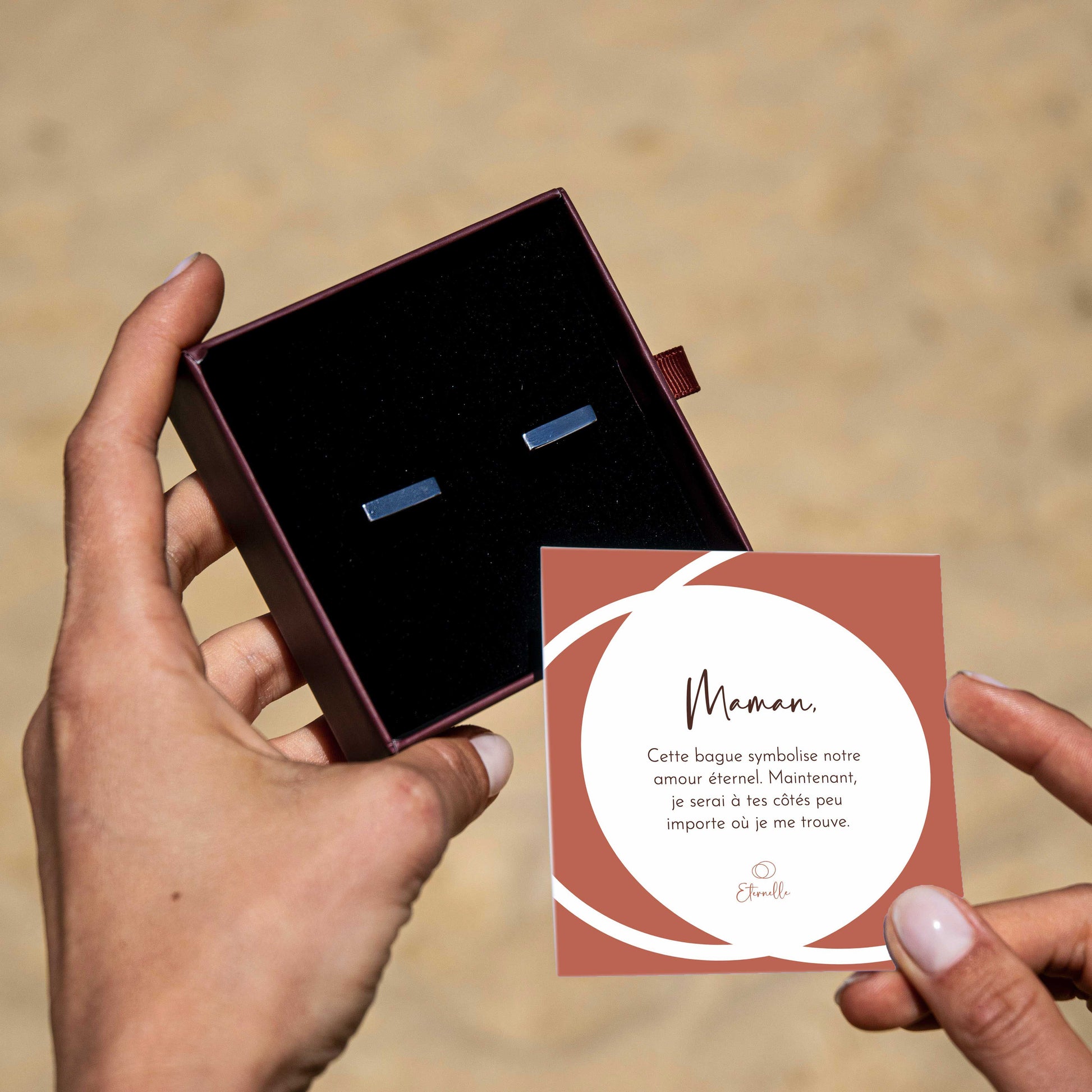 Ce coffret Éternelle contient deux bagues identiques et une carte qui laissera votre maman sans voix 💍 💍